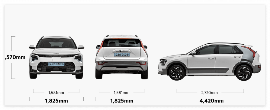 - 전장/전폭/전고 : 4420mm/1825mm/1570mm