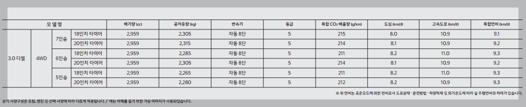 - V6 S2 3.0 디젤엔진 : 국내 유일의 V6 디젤 엔진으로 다양한 주행 환경에서도 안정적이며 강력한 주생성능을 제공