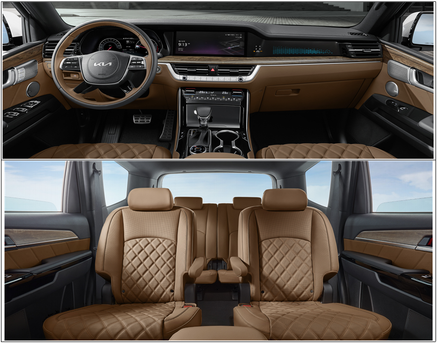 2열에는 독립된 반전식 캡틴 시트를 갖춰 편안한 사라적 공간을 제공하며, 3열 시트는 넉넉한 허리와 다리공간을 지원해 마리 리무진처럼 포근한 환경을 연출합니다. 가로형 대형 터치스크린 디스플레이를 중심으로 하여 스마트폰과 손쉽게 연결되는 다양한 특징과 고품격 사운드 시스템이 장착되어 있습니다.