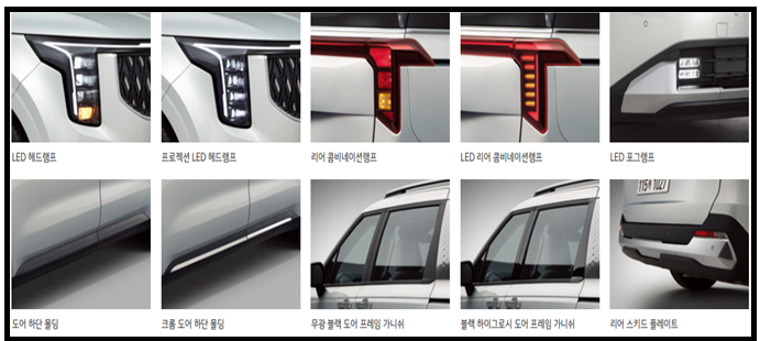 그래비티 전용 외장 디자인(블랙 휠, 블랙 라디에어터 그릴), 사이드 스텝, LED 테일게이트 램프