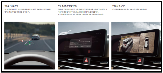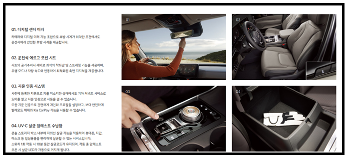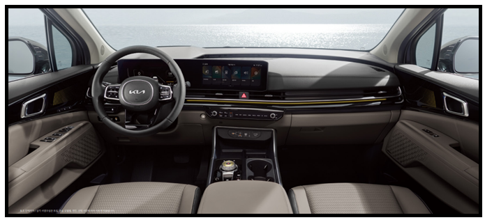 8스피커, 후석대화 모드, 스티어링 휠 오디오 리모컨, 블루투스 핸즈프리, C타입 USB 단자(데이터/충전 전환형), 멀티존 음성인식, 12.3인치 내비게이션(기아 커넥트, 폰 프로젝션, 기아 카페이), 무선 소프트웨어 업데이트