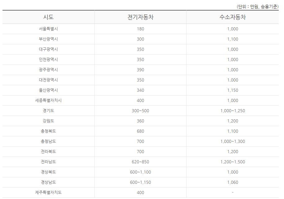 보조금같은 경우는 국고보조금과 지자체 보조금이 있으며, 국고보조금의 경우 268만원 또는 273만원이며, 지자체 보조금의 경우 아래 표를 확인해 주세요!