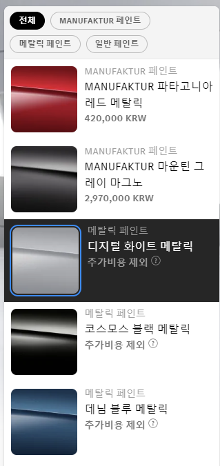 인테리어 및 익스테리어에서 휠, 외부색상, 내부 트림 등 가격을 추가하면 변경이 가능합니다. 또한 멀티미디어 및 안전도 추가 적이 옵션이 있습니다.