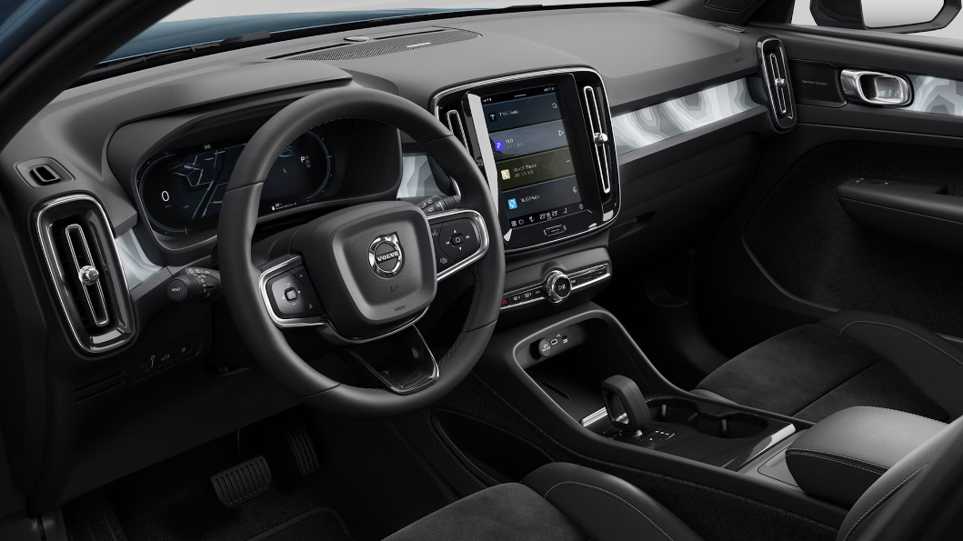 내연기관모델인 XC 40과의 다른점은 시동버튼이 존재하지 않으며, 탑승 후 브레이크 페달을 밟고 기어변속을 하면 출발이 가능합니다. 실내 디자인 특징은