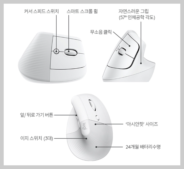 인체공학 설계 로지텍 코리아 리프트 미니 버티컬 블루투스 마우스 입니다. : 로지텍코리아 인증