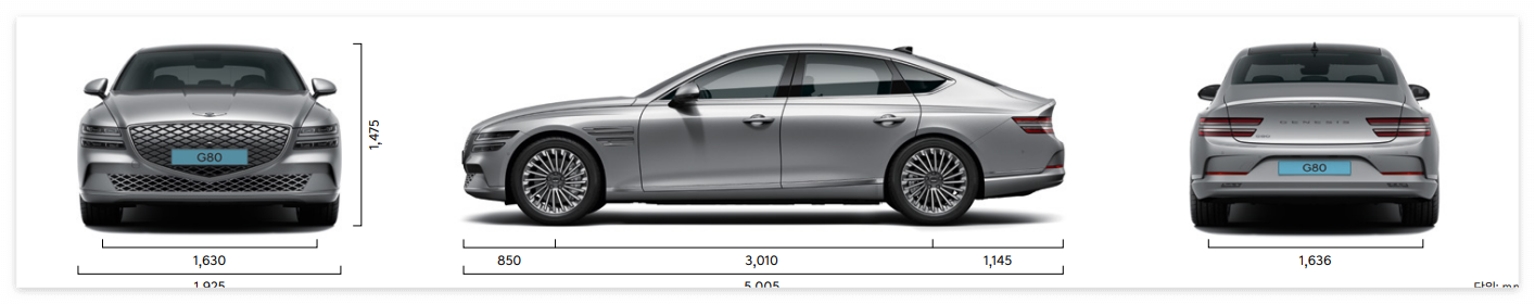 - 전장/전폭/전고 : 5,005mm/1,925mm/1,475mm