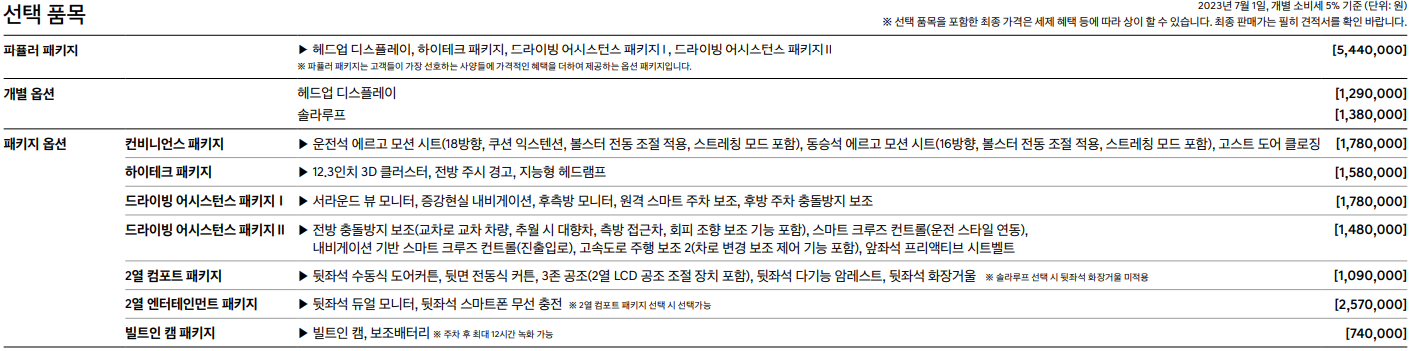Electrified G80의 시작가격은 83,920,000원(세제 혜택 후)입니다. 필수선택사양과 선택품목은 아래 표를 참고해주세요