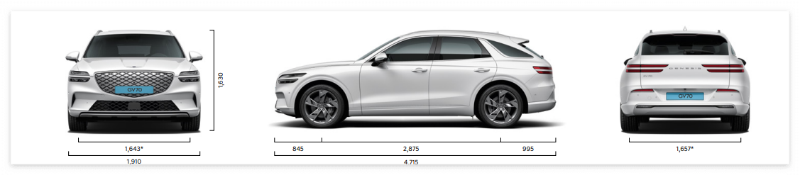 - 전장/전폭/전고/축거 : 4,715mm/1,910mm/1,630mm/2,875mm