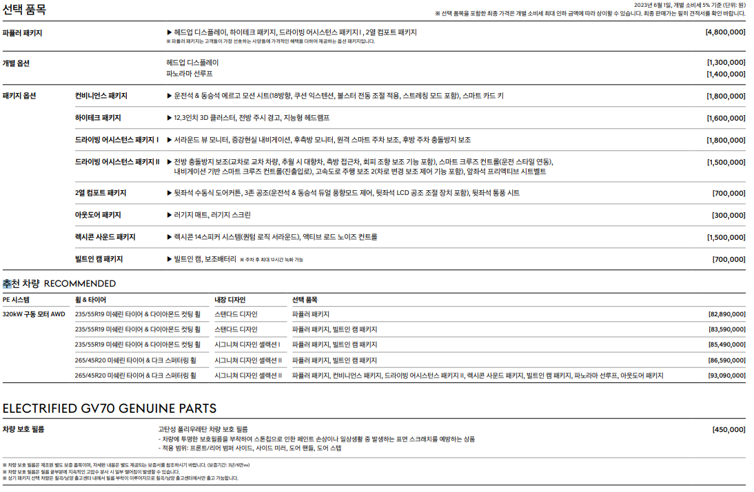 Electrified GV70의 제원 : 최적화된 동력시스템과 안전기능