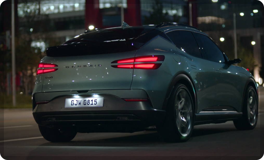 제네시스 GV60은 제네시스의 첫 순수전기차 모델로써 E-GMP플랫폼을 사용하여 실용적인 내부공간을 갖추었습니다. 이 모델은 제네시스의 디자인 정체성인 '역동적인 우아함(Athletic Elegance)'을 잘 표현한 차량으로 쿠페형 CUV 스타일의 날렵하면서 다이내믹하고, 가장 역동적인 디자인으로 고성능 전기차(EV) 이미지를 강조한 모델입니다.