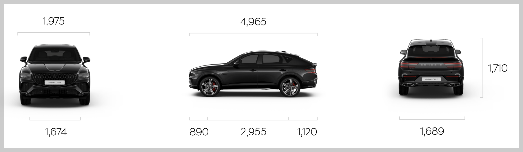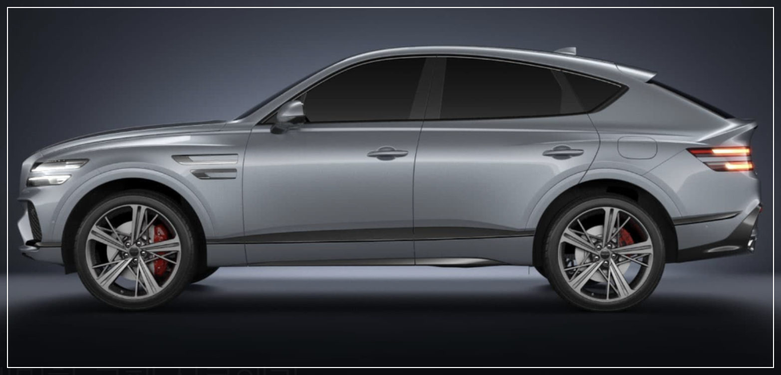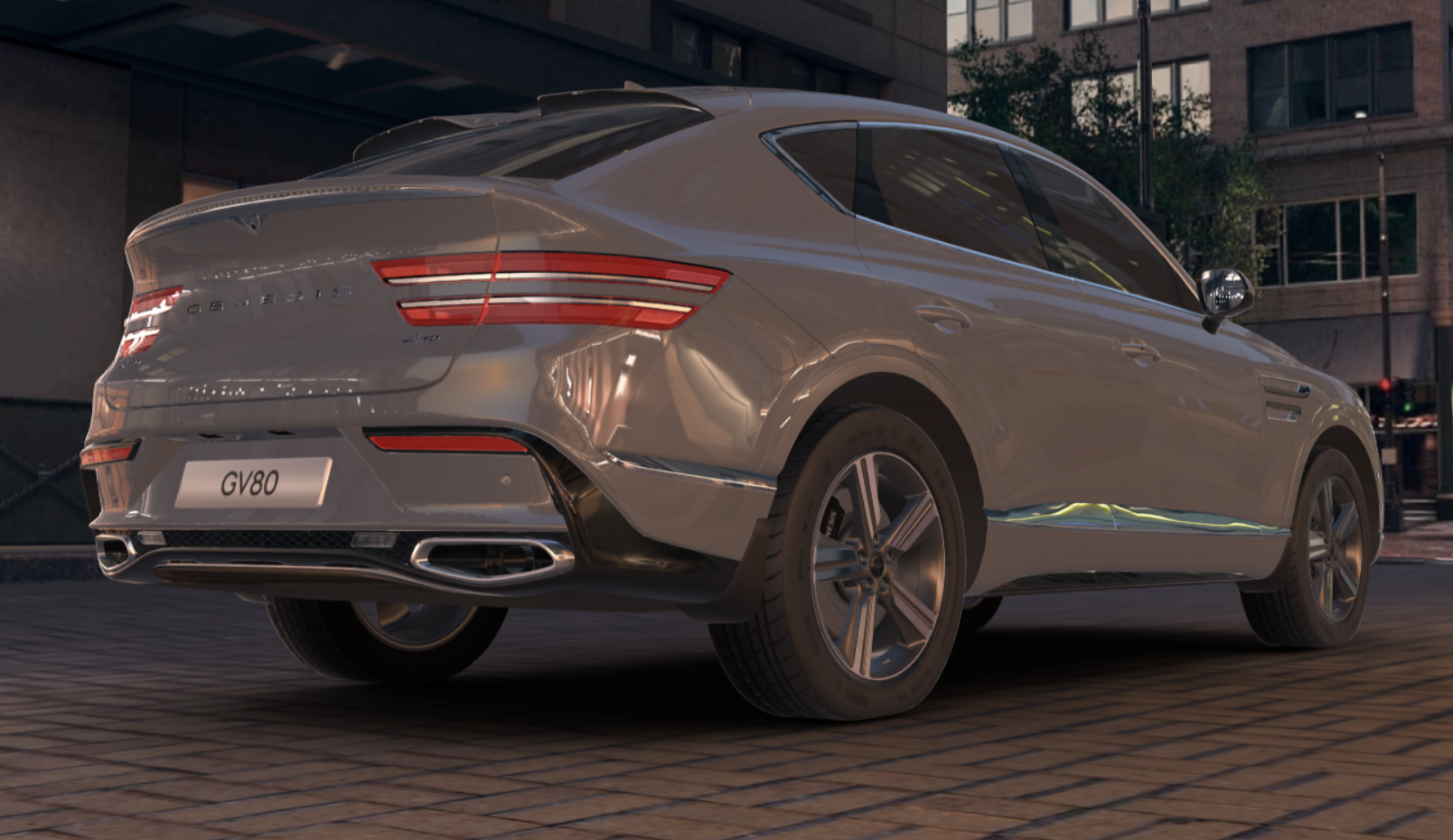 이번에 부분변경(페이스리프트)된 제네시스 GV80 쿠페는 기본 GV80 SUV와는 차별점이 있습니다. 전면부의 경우 두개의 레이어가 겹치는 형태로 라이에이터 그릴이 디자인이 되어있어 좀더 역동적이고 스포티한 느낌을 주고 있습니다. 또한 에어인테이크들이 좀더 크고 웅장한 느낌을 주고 있습니다. 그리고 기본 SUV 모델과 동일한 부분으로써 두줄라인의 전면램프는 G90과 같은 매트릭스 LED 램프가 들어가 있습니다. 측면부의 경우 기본 SUV모델과 거의 동일한 디자인을 가지고 있습니다. 하지만 쿠페형으로써 뒷부분으로 가면서 낮아리는 루프라인을 가지고 있습니다. 후면의 경우 가장 특징적인 점은 듀얼머플러가 적용이 되었다는 점입니다. 중간에 잇는 역삼각형의 모양을 누르면 트렁크가 열리게 됩니다.
