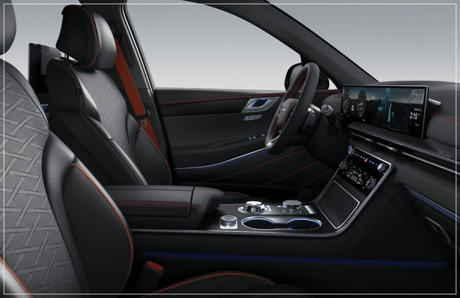 - 27인치 OELD 디스플레이 : 오디오 및 비디오 내비게이션과 클러스터를 통합하여 더 확장된 시야를 제공하고 음성인식으로 시트, 열선, 에어컨, 창문 등을 제어할 수 있습니다.