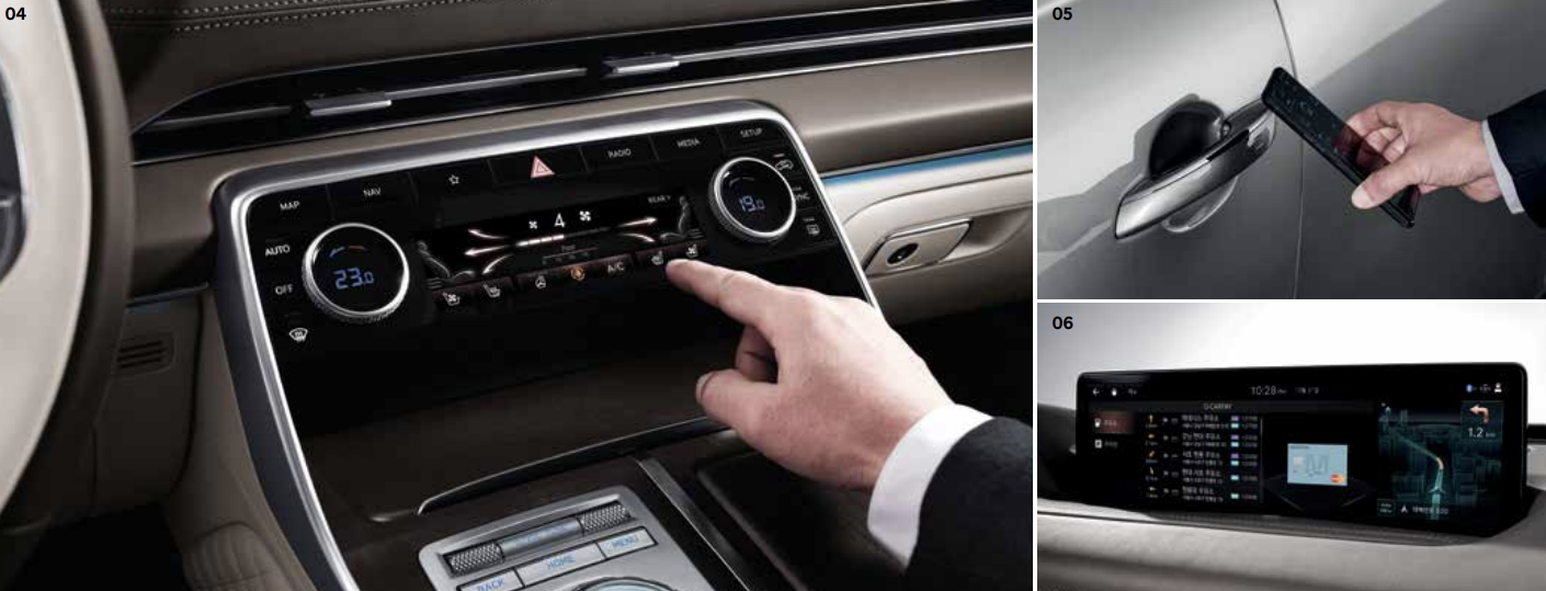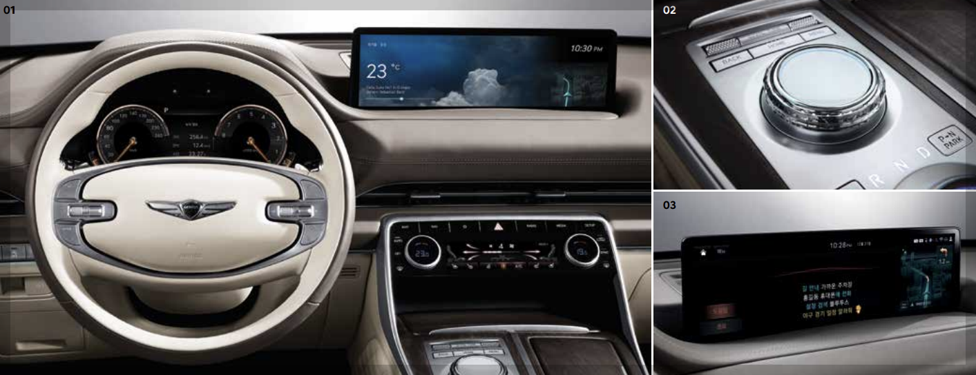 14.5인치 인포테인먼트 시스템과 12.3인치 클러스터가 있어 뛰어난 시인성과 다양한 편의 기능을 제공하고 있습니다. 또한 제네시스 통합 컨트롤러로 복잡한 키보드 입력을 손글씨 입력을 통해서 간편하게 이용을 할 수 있습니다. 이외에도 음성인식 차량제어, 터치타입 공조패널, 에프터 블로우등 다양한 편의성 옵션을 제공하고 있습니다.