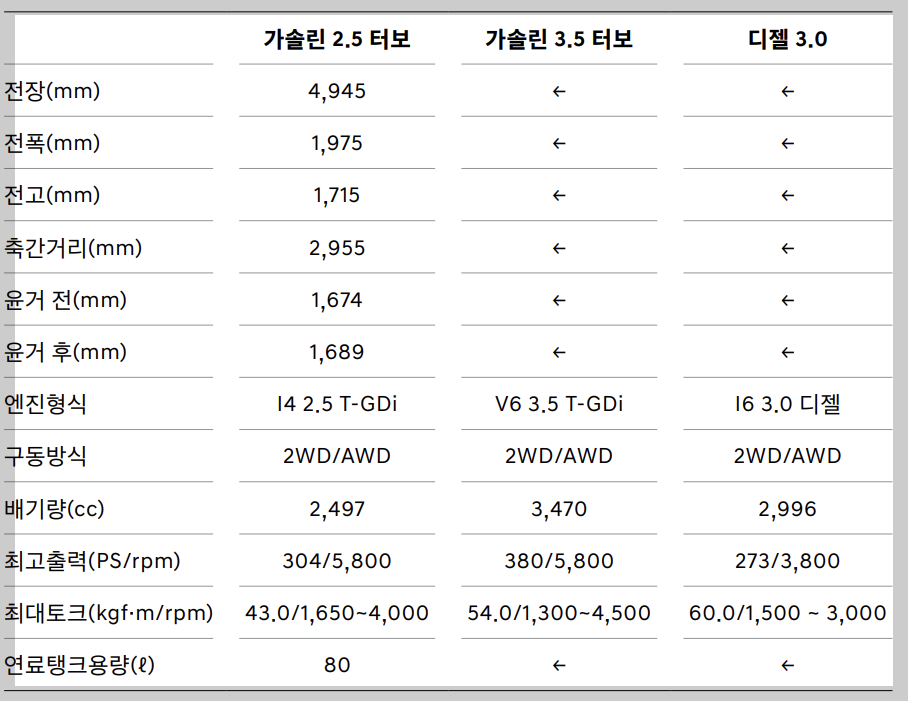 [가솔린 2.5T 기준]