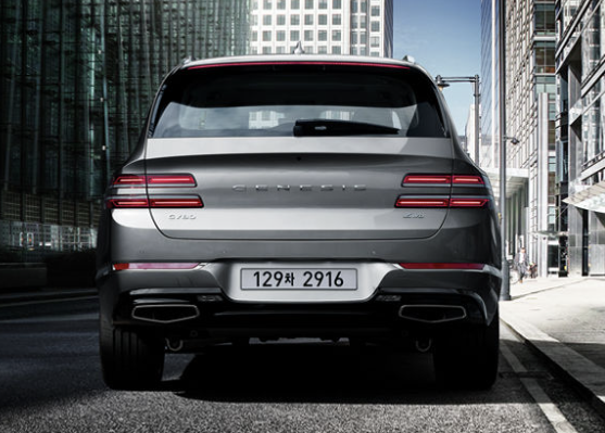 그리고 전면부는 제네시스를 상징하는 방패형 대형 그릴이 웅장함을 보여주고 있습니다. 후면부 역시 두줄라인 쿼드램프가 있는데요. 그 중간에 제네시스의 레터링이 들아가 있습니다.
