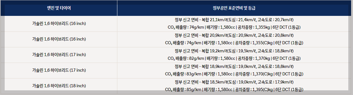 - 가솔린 1.6 하이브리드 엔진