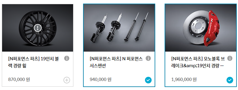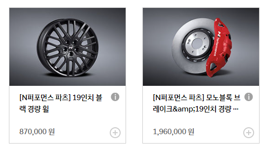 여기서 휠옵션도 선택이 가능한데 모노블록브레이크를 선택하면 왼쪽에 있는 휠이 포함됩니다.[1,960,000원]