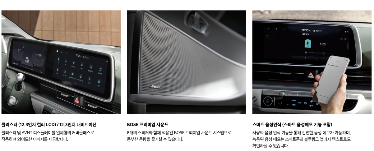 - 실내외 V2L : 차량 외부로 전력을 공급할 수 있는 V2L 기능은 사용자에게 새로운 전동화 경험을 제공합니다.